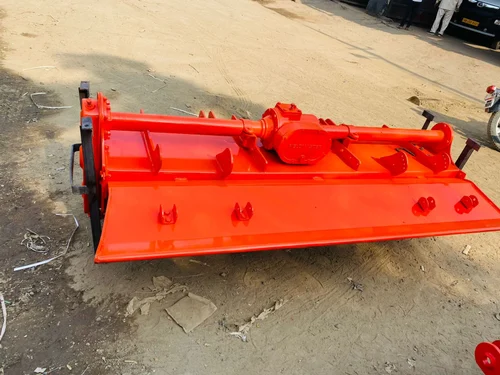 A Tractor Rotavator, also known as a rotary tiller, is a farm implement used for tilling the soil efficiently. It breaks, stirs, and pulverizes the soil with rotating blades, preparing a perfect seedbed in a single pass. It replaces traditional ploughing methods with faster, deeper, and more uniform soil preparation.
